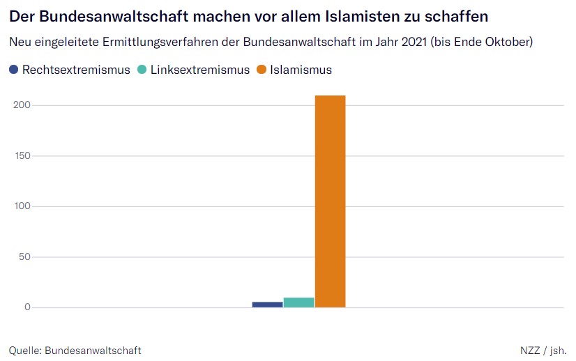 Den rechten Extremismus deshalb als größte Gefahr einzustufen, funktioniert aber nur, wenn man die islamistischen Anschläge der vergangenen Jahre ausblendet; und zwar die gerade noch vereitelten und die tatsächlich erfolgten: So wurden etwa bei der Attacke auf einen Berliner Weihnachtsmarkt im Jahr 2016 dreizehn Menschen aus dem Leben gerissen und Dutzende teilweise schwer verletzt.