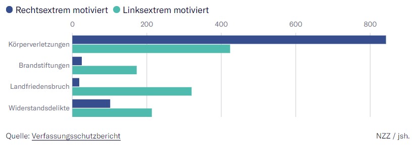 Aufseiten der Opposition befürchtet man durch die Positionierung von Innenministerin Faeser eine Verengung des Blicks. Zitat: „Ich habe mich gewundert, dass die Bekämpfung des Rechtsextremismus der einzige Schwerpunkt der Ministerin ist“, sagt die CSU-Innenpolitikerin Andrea Lindholz gegenüber der NZZ. Sie leitete in der letzten Legislaturperiode den Innenausschuss des Bundestages. „Bei der aktuellen Bundesregierung habe ich schon die Befürchtung, dass wir einen einseitigen Fokus auf rechtsextreme Delikte bekommen. Wir müssen aber auf beiden Augen wachsam sein und nicht nur auf dem rechten“, sagt Lindholz.